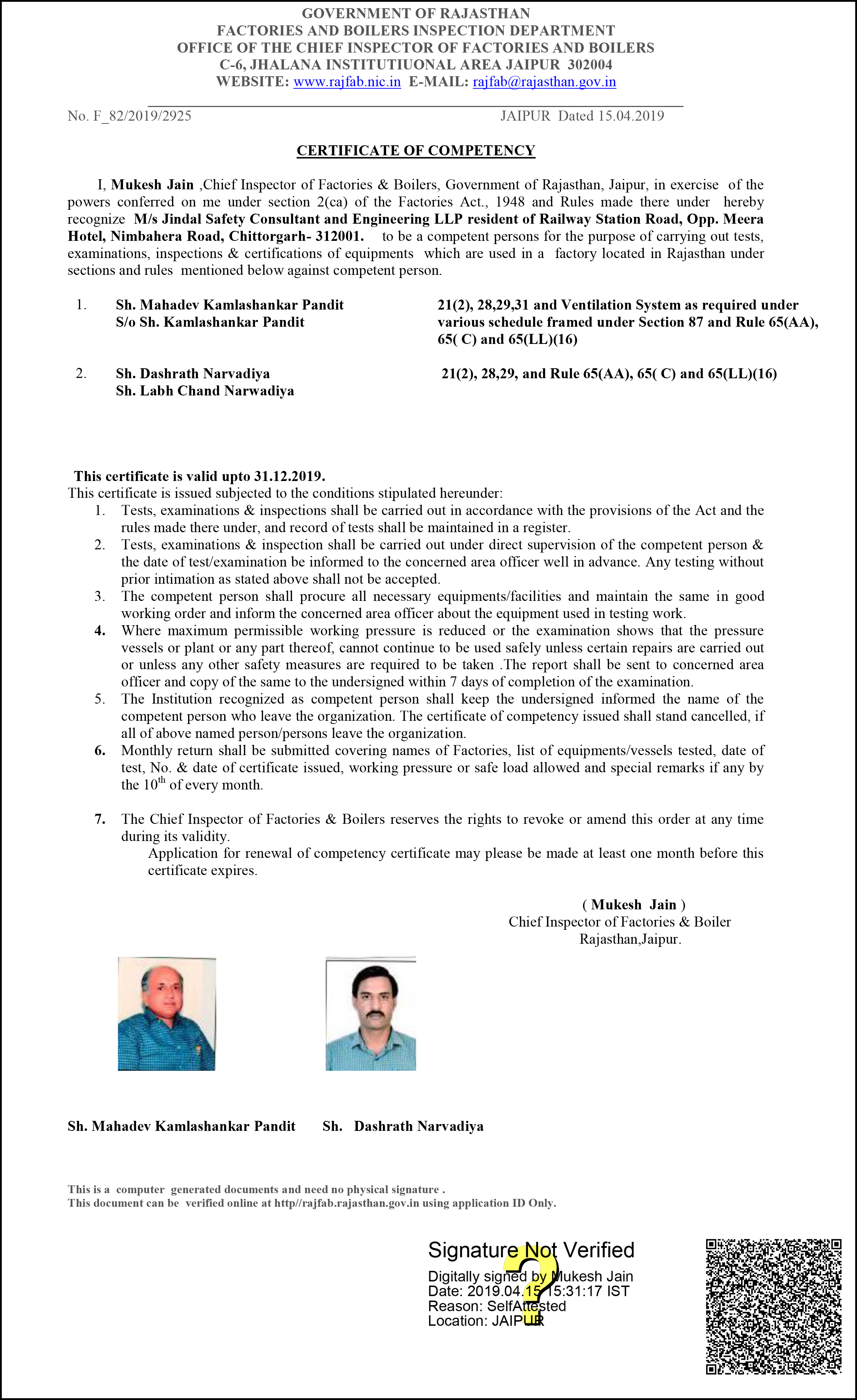Certificate of Competency